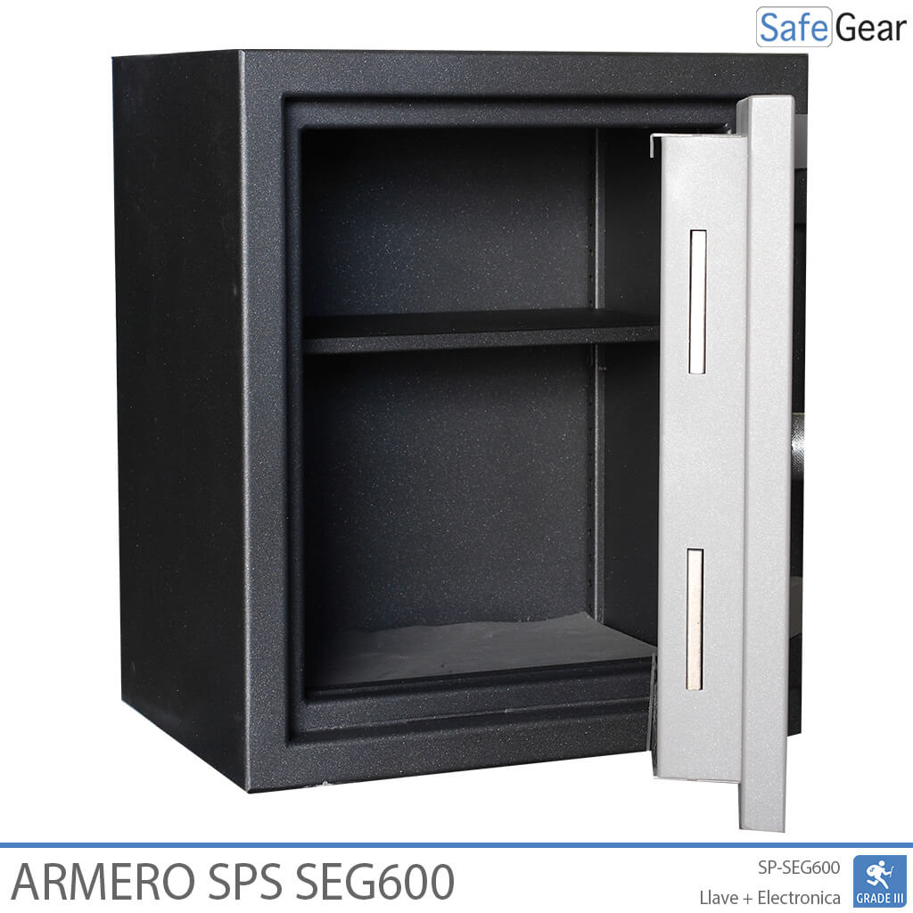 Las paredes del Armero SPS III tienen una construcción mediante dos chapas de acero de 2 mm, entre las dos se rellena con mortero de alta resistencia, alcanzando las paredes 45 mm de espesor.