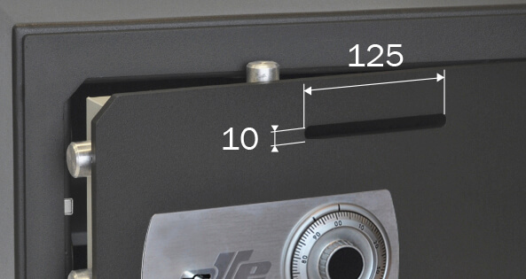 Las paredes de la caja son de doble cuerpo de 3+2 mm de grosor. La puerta y el marco de acero tienen 10 mm de espesor.