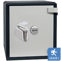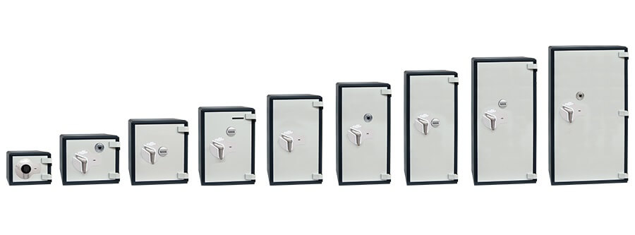 Disponible con cerradura de llave en Klasse 1 o con cerradura electrónica de Klasse 2, ambas certificadas por VdS. - Escoja su cerradura en los botones superiores de tabla: