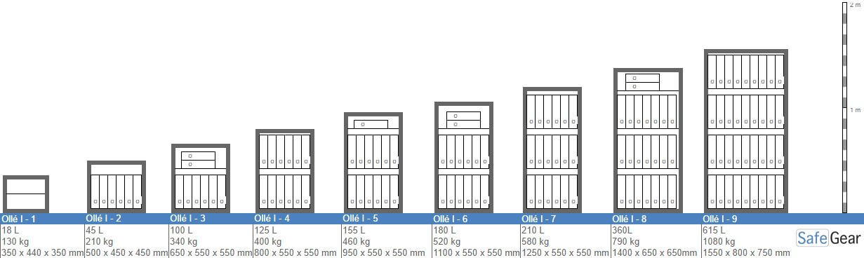 Esta serie de cajas fuertes incluye estantes anti-vuelco regulables en altura para todos los modelos excepto AR-1, debido a sus dimensiones.