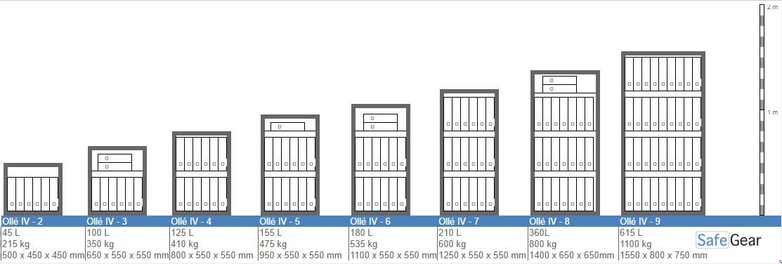La serie Ollé IV, debido a su máximo nivel de seguridad es perfecta para guardar grandes cantidades de dinero en efectivo, documentos legales de alta importancia u otros objetos de gran valor que necesiten ser protegidos. Este modelo según el tipo de cerradura elegida posee certificación para el uso en gasolineras, administraciones de lotería, bancos o joyerías, de igual manera es de útil para grandes empresas.