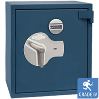 Ha sido certificada en Grado IV según la EN-1143-1 y está homologada para el uso en gasolineras, admin. de lotería, bancos, joyerías o empresas de seguridad.