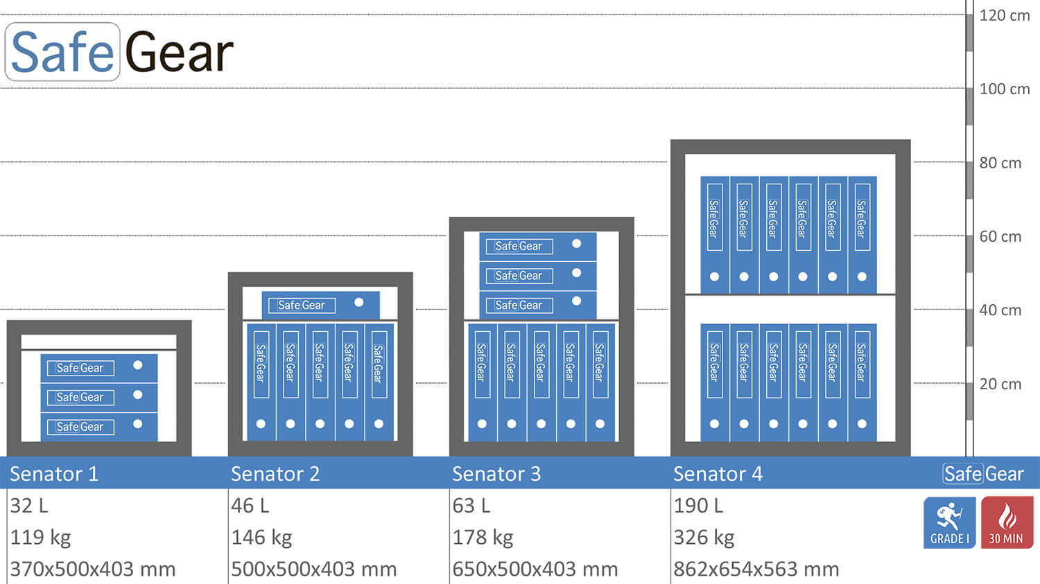 La Senator es una caja fuerte ignífuga resistente al fuego y certificada en Grado I contra robo.