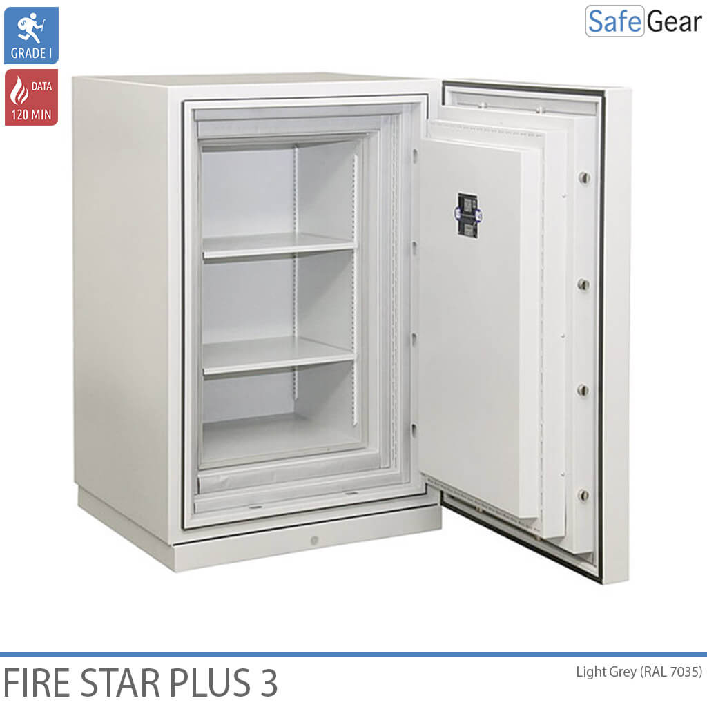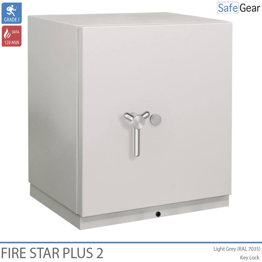 Fire Star Plus es una gama de cajas fuertes ignífugas, homologada en Grado I contra robo, resistente a 120 minutos de exposición al fuego y las interferencias magnéticas.