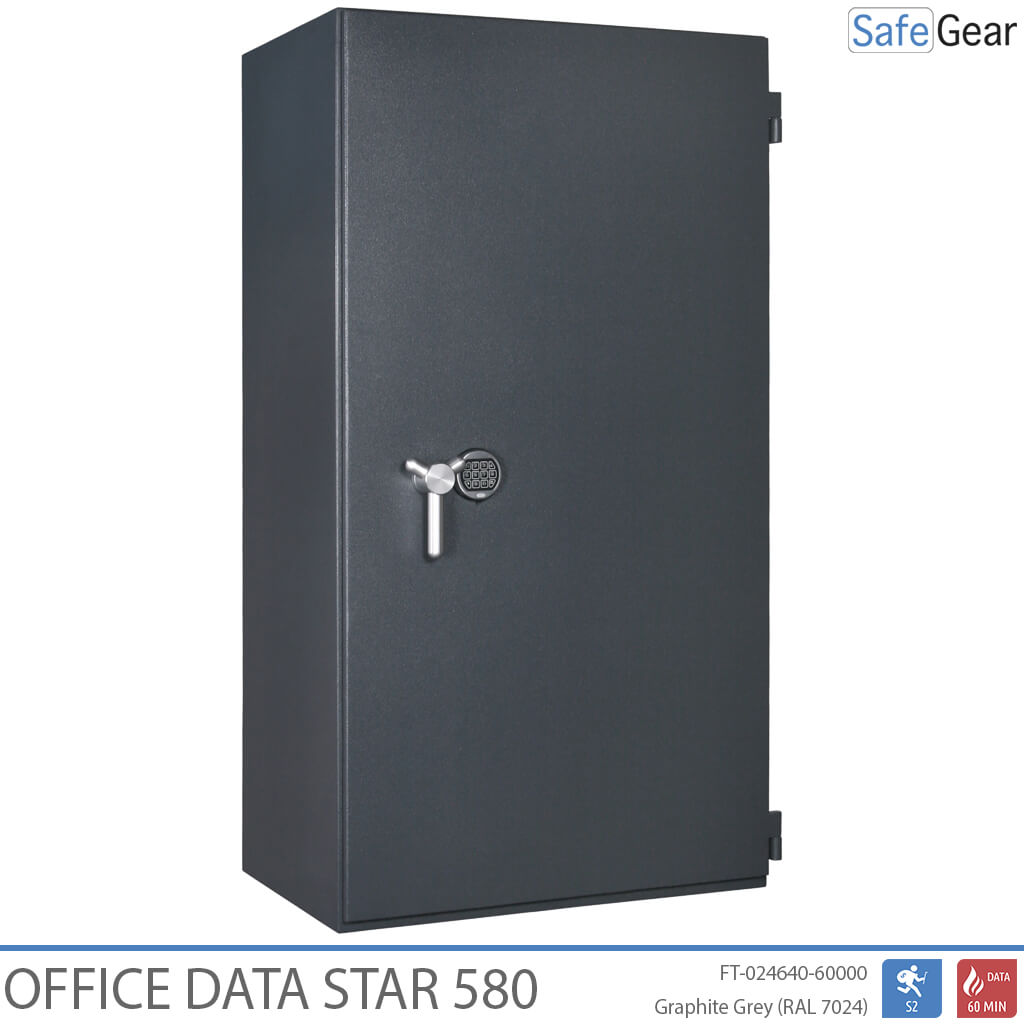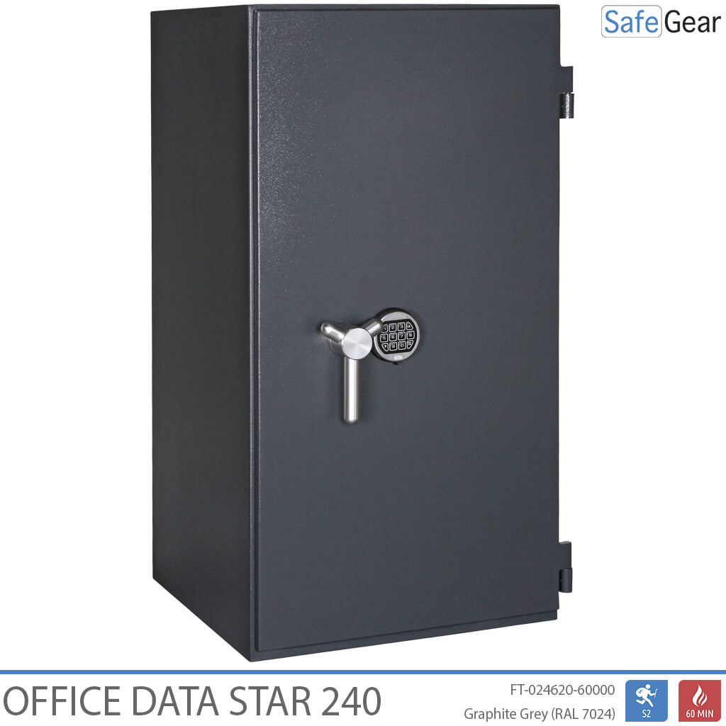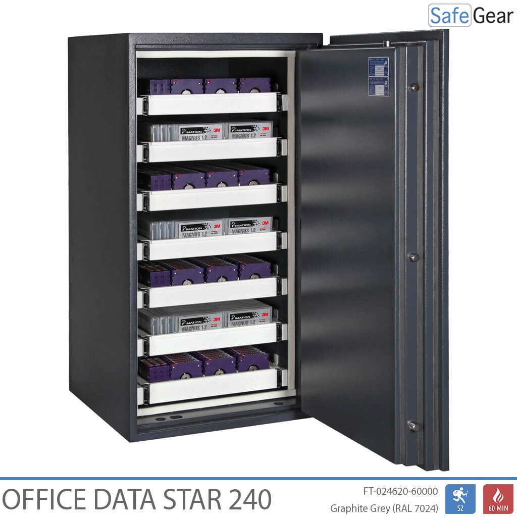 Office Data Star es una caja fuerte ignífuga para datos, certificada en grado S2 y 60 minutos de exposición al fuego.