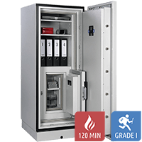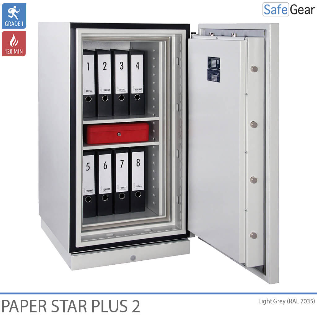 Paper Star Plus es una gama de caja fuerte ignífuga, con una resistencia al fuego de 120 minutos, certificada en Grado I contra robo.