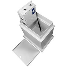 Las bisagras han sido colocadas internamente, ofreciendo la posibilidad de abrir la puerta con un ángulo de 90º hacia arriba. Es fácil de abrir, debido a los resortes de gas a presión situados en el interior de la caja.
